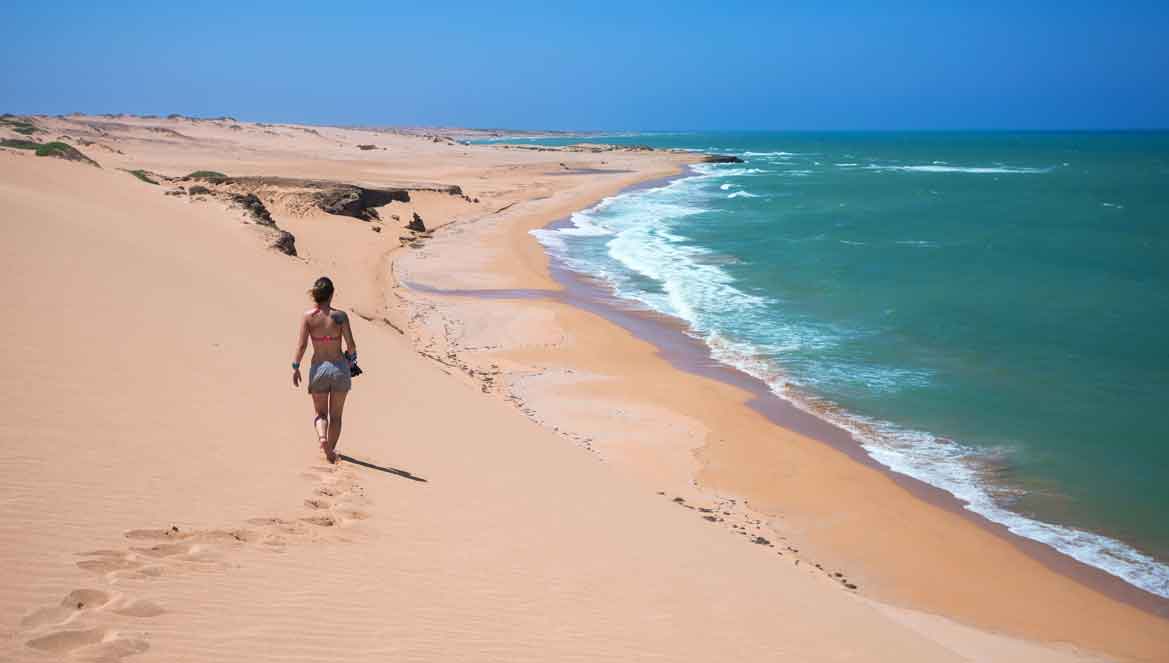 - Cabo de la Vela in La Guajira: One of the most beautiful places in Colombia. The cape, as it is called, is full of rocky cliffs above and sandy beaches below, accompanied by the stunning colours of the desert.
