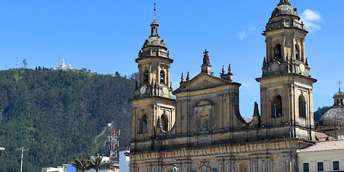 Bogotá is the capital of Colombia. Its name comes from the word "Bacatá", which in the Muiscas's language means "Lady of the Andes," although some say that the real meaning is "field outside of the tillage," and others say this was the recreation city for the Zipa.